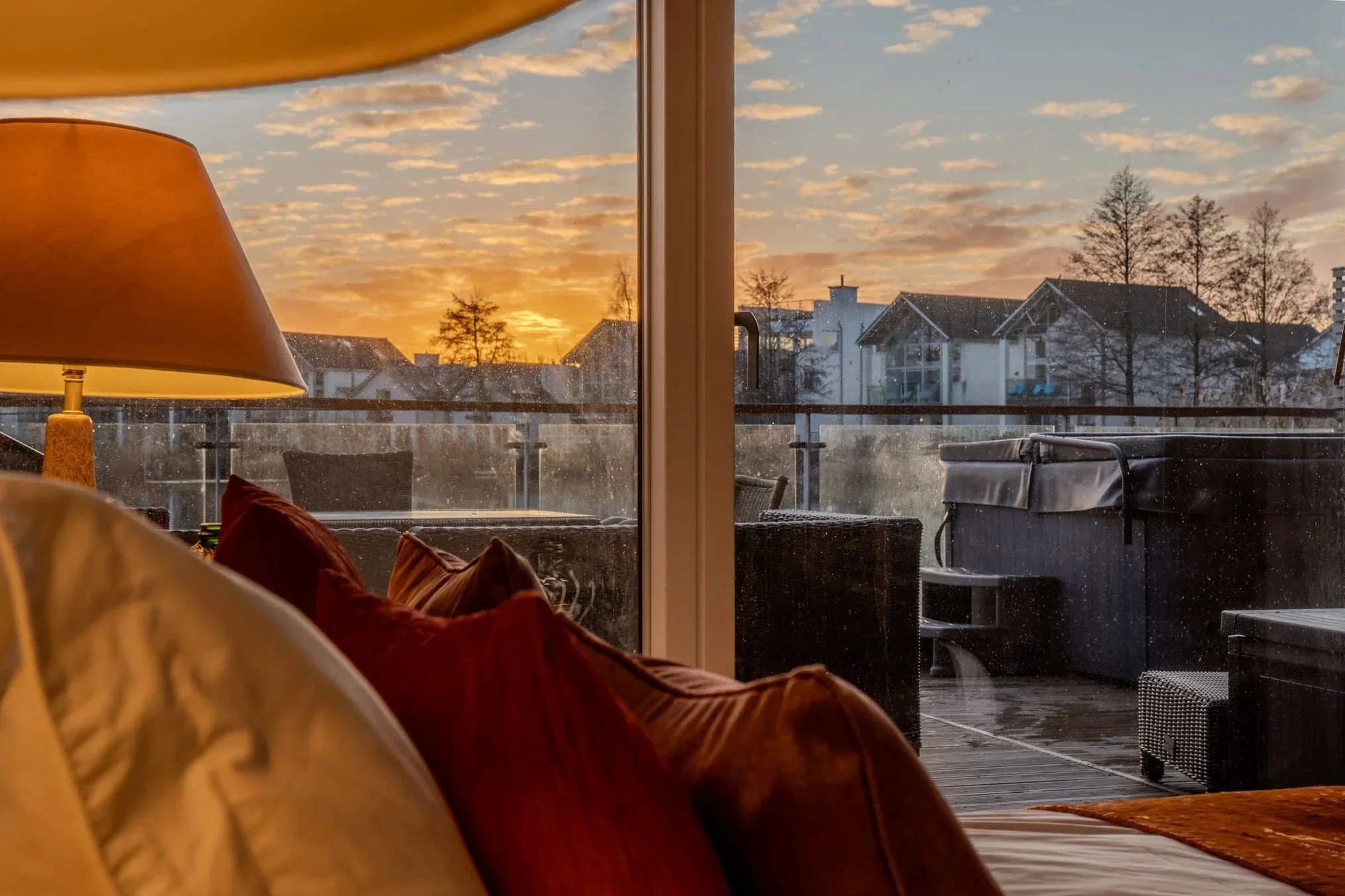 The experience extends beyond the glass. The lower deck is designed for all-day outdoor living. Start the day on the sun loungers, enjoy long lunches at the outdoor dining table (served fresh from the BBQ), and finish the evening with a soak in the hot tub as the sun sets over the lake.